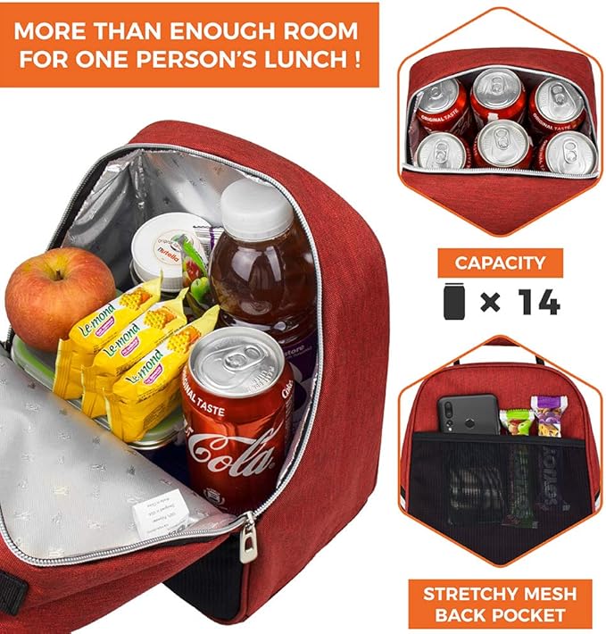 - LARGE RED LUNCH BOX: This kids lunch bag measures 12 x 8.5 x 6 inches (L x W x H) and can easily fit up to 14 cans or one boys lunchbox. This medium lunch bag for boy girl is perfect for school, field trip, picnic, beach, gym, hiking, camping, travel, work or office