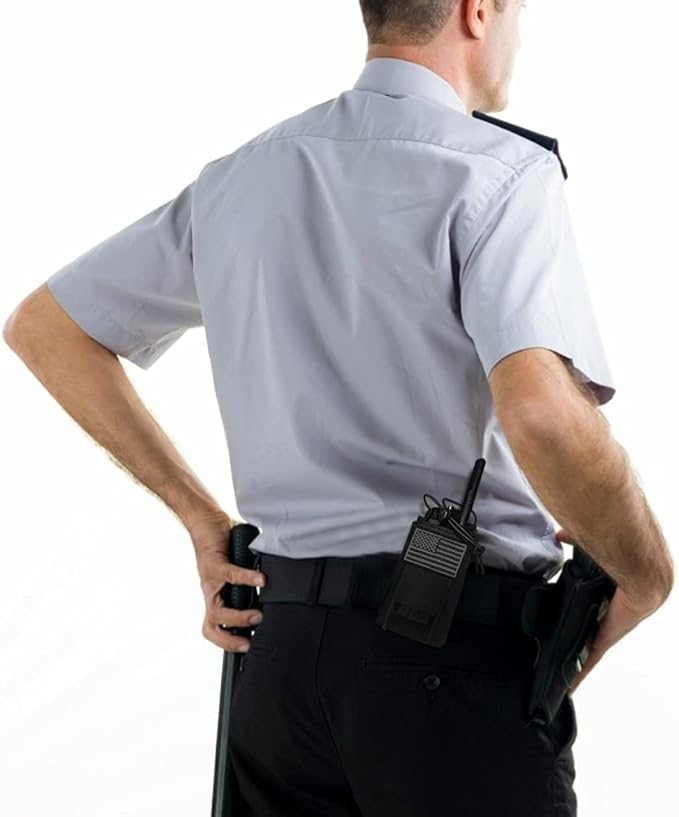 - Size:5.9''x3.5''x1.7''(H*L*W),fits up to 4inch belt widths.Radio holder made of high quality and durable nylon material 1000D, high elastic rubber and durable polyester fabric.