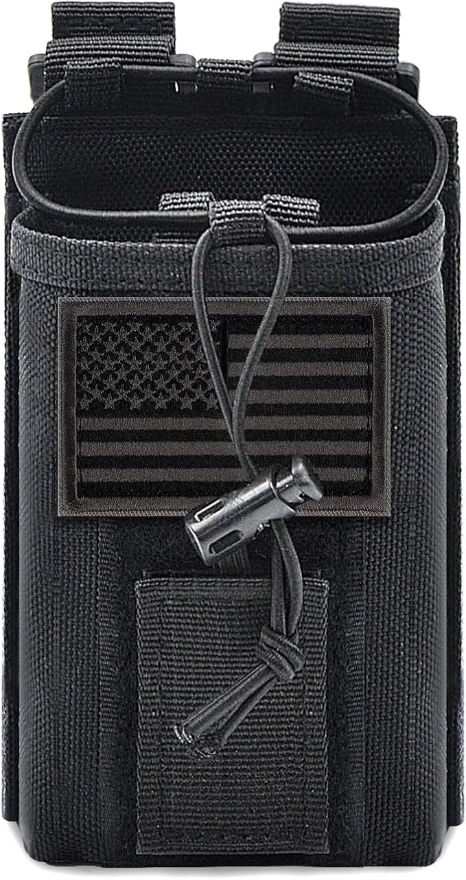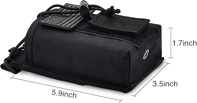- Molle system: Molle radio pouch can be easily connected to any molle-compatible tactical vest, backpack, belt and other equipment.⚠Note: The American flag patch is pasted on the inside of the radio pouch and can be peeled off and pasted on the outside when using it.