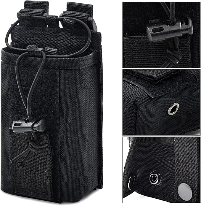 - Adjustable design: The radio can be securely fastened to the radio holder with an adjustable elastic cord and hook & loop, the detachable while hook & loop inside the bag can be adjusted to tighten the radio at different height, protect the radio from rubbing and prevent the radio from falling.