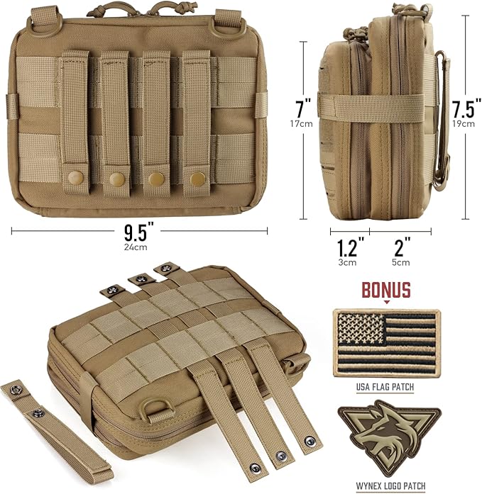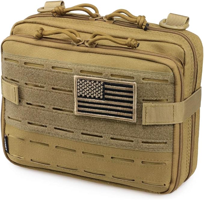 WYNEX Tactical Molle Admin Pouch of Laser Cut Design, Utility Pouches Molle Attachment Military Medical EMT Organizer with Map Pocket EDC EMT Pack IFAK Tool Holder Universal U.S.A Patch Included