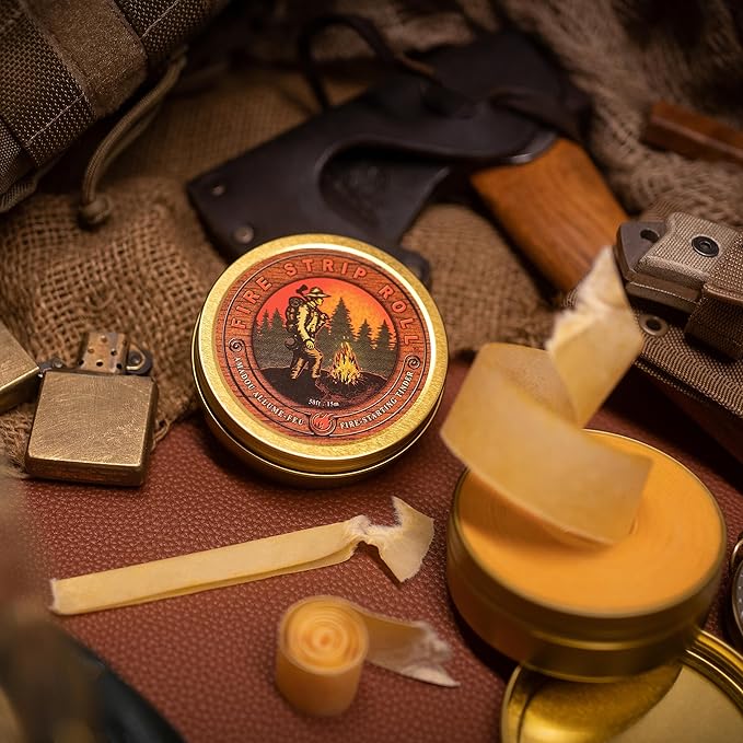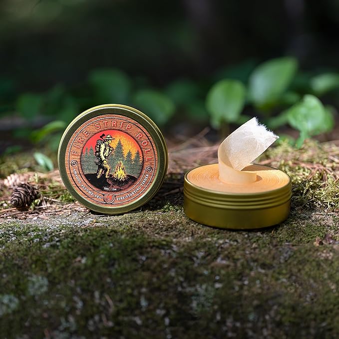 Fire Strip Roll 55-feet Weatherproof Waxed Fire Starter Tinder Tape for Emergency, Camping, Survival, Fire pits | Made in North America