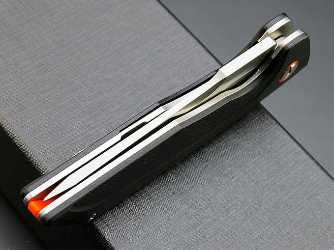 - OUTDOOR KNIFE- Blade is symmetrical, and perfectly machined.It opens smoothly and can be flipped ball bearing pivot open,reliable locking mechanism with liner.The blade is centered in the handle when closed.