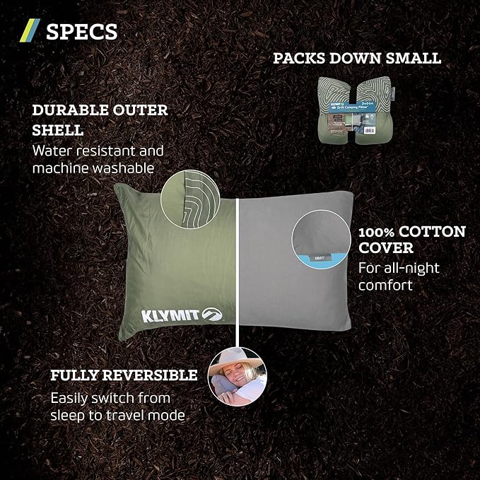 - DON'T CAMP WITHOUT IT. Elevate adventures with the Drift Camping Pillow. Travel-friendly with a water-resistant shell, machine-washable cover and packed with memory foam — camping has never been so comfortable.