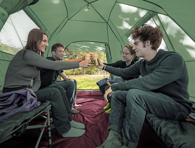 - ✔KAZOO outdoor camping tent offer 2 doors and 2 windows to provide excellent ventilation. We design a porch to offer you a comfortable 4 person tent, the footprint is included in porch area. As the comfortable tents for camping, the inner tent is full of mesh wall and ceiling to provide max view and airflow. Full coverage rainfly is designed to offer a high performance waterproof tent. This multifunctional 4 person camping tent makes your family closer to the nature.