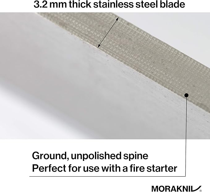 - Premium Blade: Stays sharp for a long time and features a semi-matte finish; 0.13 inch thick knife blade features a square-edged ground spine that can be used as a striker with fire steel