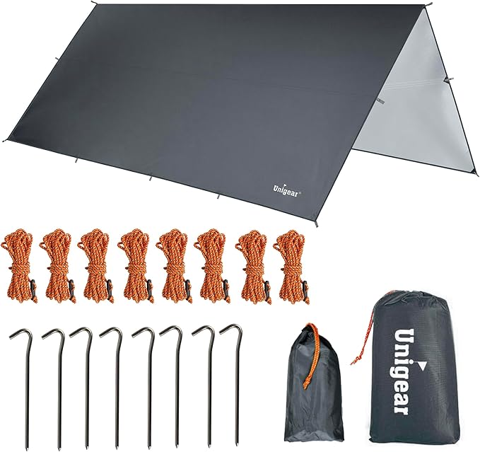 - BLOCK THE SUN: Coated with PU Inner layer, Unigear lightweight tarp can provide a UV protection in the sun. Perfects for hammock camping, backpacking, hiking, or other adventure