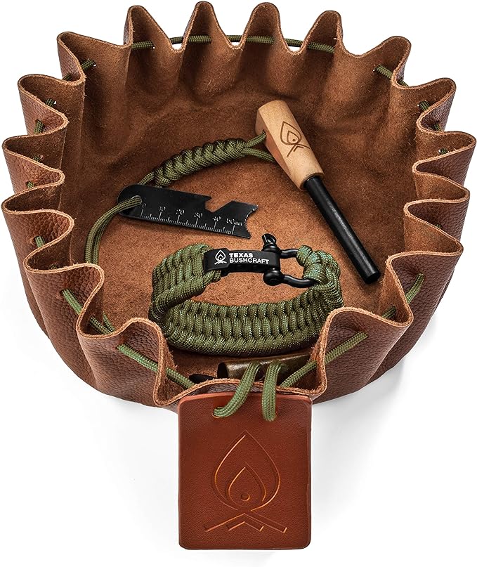 - SURVIVE AND THRIVE with a firestarter kit by Texas Bushcraft. This high-quality 4-piece set includes fire steel with a striker; a paracord survival bracelet; and a drawstring tinder pouch for collecting combustible materials for starting a fire.