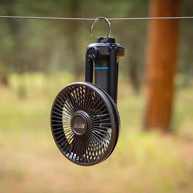 - Added Functionality: The fan includes a hook for hanging and collapsible convenience stand