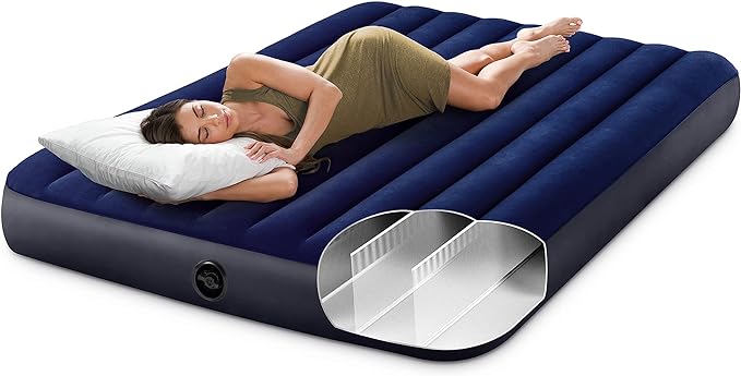 Intex 64759E Dura-Beam Standard Downy Air Mattress: Fiber-Tech – Queen Size – 10in Bed Height – 600lb Weight Capacity – Pump Sold Separately