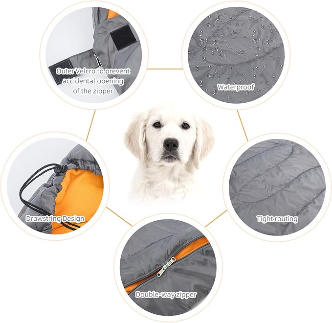 - 【Safe Design】: With zipper on the tail and one side of the bag, and drawstring design on the head keeps dog protected.