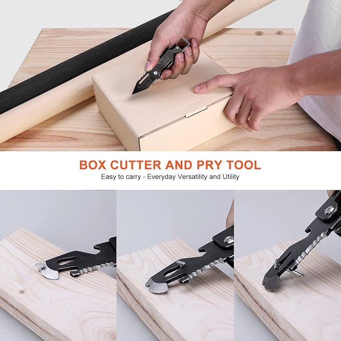 - Camping Essentials: This multitool knife as a edc camping essentials, designed with (5.12"L X 0.75"W, 2.4 OZ) ideal size, weight and shape for daily carrying and use. You can use it as edc keychain, or survival camping edc gear, your ideal companion for all activities and situations