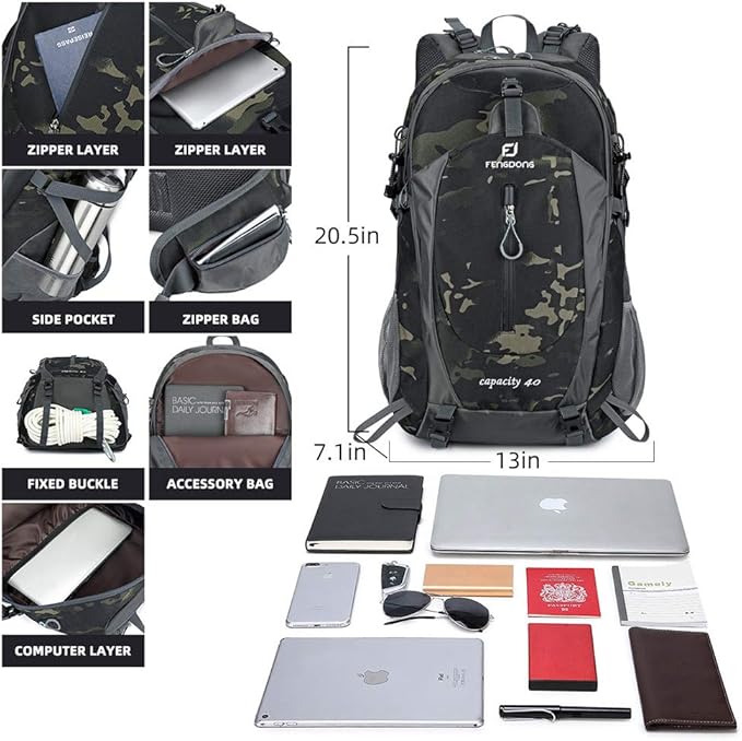 40L Waterproof Lightweight Hiking,Camping,Travel Backpack for Men Women