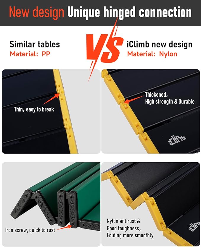 • Unlike other similar tables with bungee cord connection, this table has unique hinged design connection which will make it last many years.