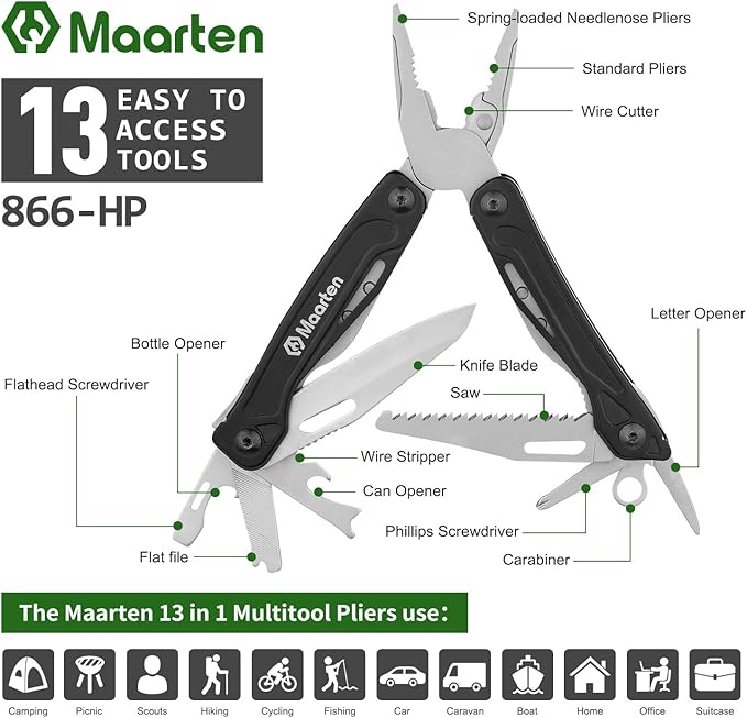- ADVENTURE SEEKERS’S AMAZING GIFT: If you are searching for a great gift for someone who loves to adventure,survival, hiking, camping, fishing, hunting, or backpacking. Use in multiple places, our Maarten Multi-functional pliers is the perfect affordable gift!