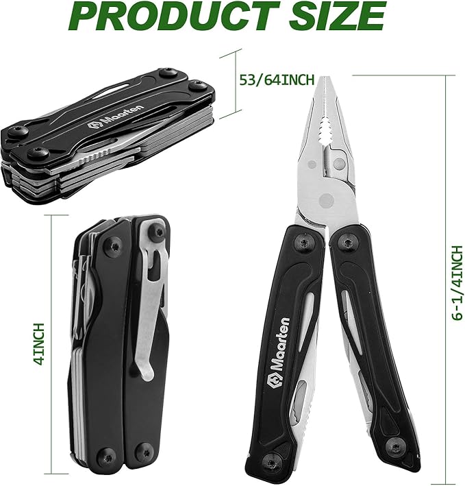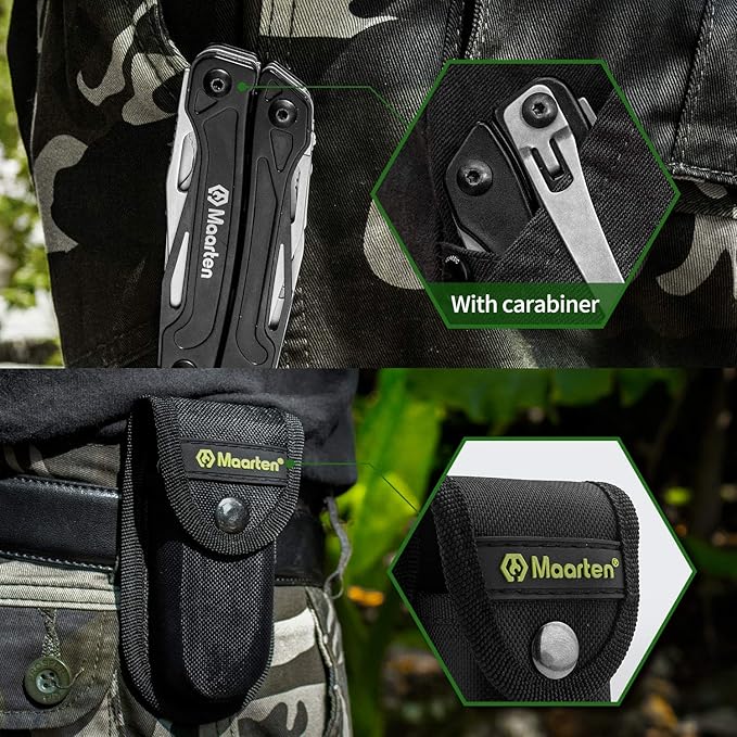 - Handy and Durability: Multi-tool design with Pocket Clip, Comes with a heavy-duty nylon pouch. You can use the belt clip to attach it to your belt or clip this on a difference belt and backpack.This Maarten pliers is fully functional.