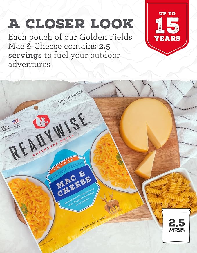 - VERSATILE USES: Beyond camping and survival, ReadyWise Mac & Cheese is perfect for home storage, quick family dinners, and last-minute meals. It's a versatile addition to your pantry.