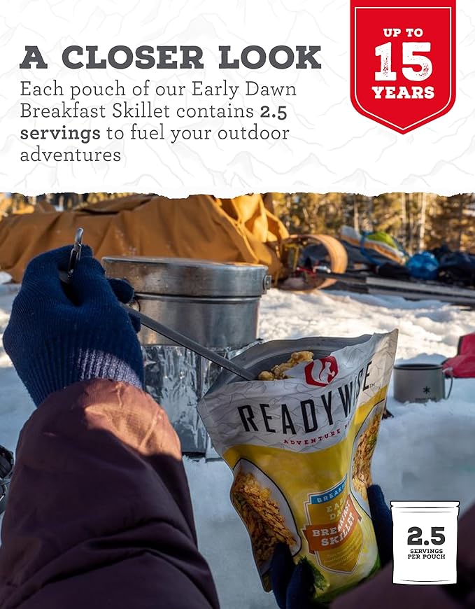 - VERSATILE USES: Beyond camping and survival, ReadyWise Breakfast Skillet is perfect for home storage, quick family breakfast, and last-minute snacks. It's a versatile addition to your pantry.