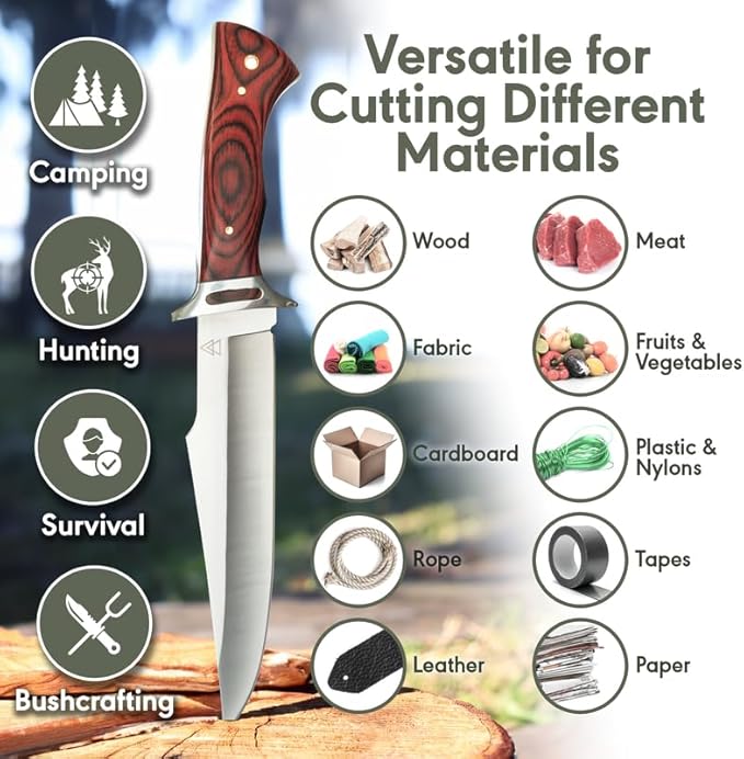 - A BEVEL SHARP-EDGE KNIFE DESIGNED FOR EVERYDAY USAGE. Our hunting knife with sheath features a 25-degree double bevel sharp edge for effortless control and precision cutting for meal prep and a clean, precise field enough to cut firewood kindling.