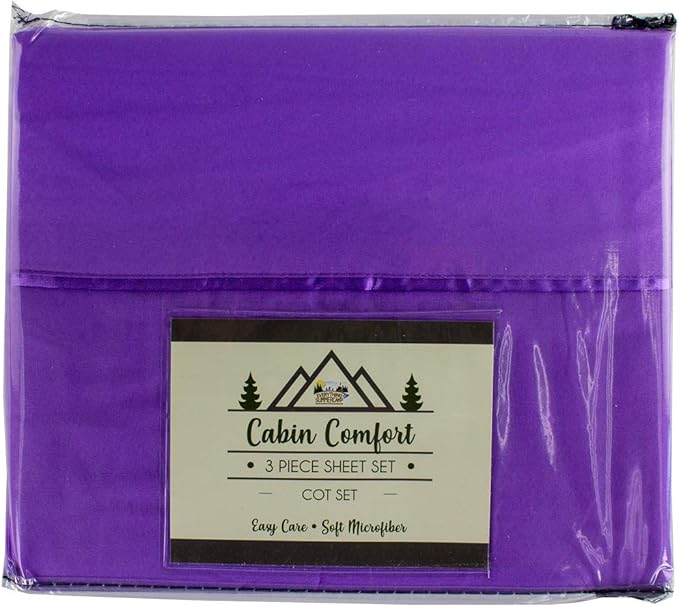 Everything Summer Camp Cabin Comfort - Cot Sheet for Camping and RV Cots - Fits All Cot Size Beds Comfortably -72 x 28 Inches - Super Soft (3 Piece Cot (Fitted, Flat, Pillowcase), Purple)