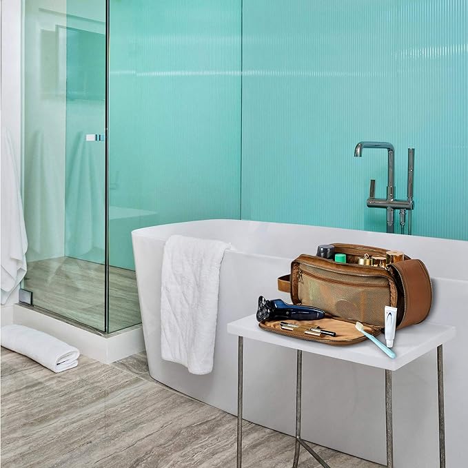 • WATER RESISTANCE STURDY MATERIAL: Exceptionally well built, the toiletry bag is made of PU leather, water-resistant nylon lining to keep moisture out of the bag. Premium zipper and reinforced seams are also implemented for long-lasting performance