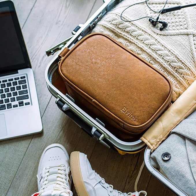 Elviros Toiletry Bag for Men, Large Travel Shaving Dopp Kit Water-resistant Bathroom Toiletries Organizer PU Leather Cosmetic Bags