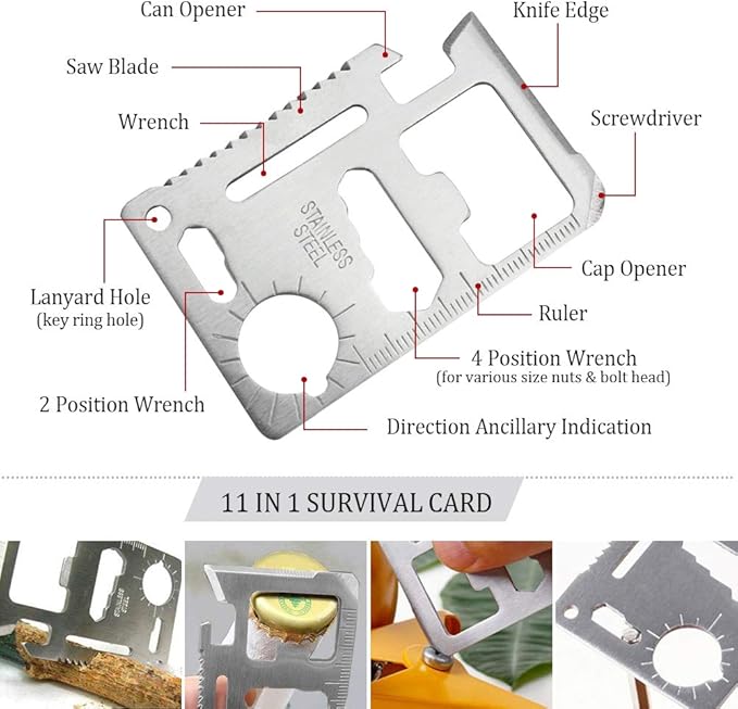 - ✔【9 Pieces Practical Survival Gear】Includes 9 pieces practical survival tools: emergency blanket, glow stick, LED flashlight, paracord bracelet compass, whistle, 11 in 1 survival card, disposable poncho, etc, can meet your different needs in hiking, camping, cycling, backpacking, sports or travel