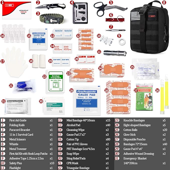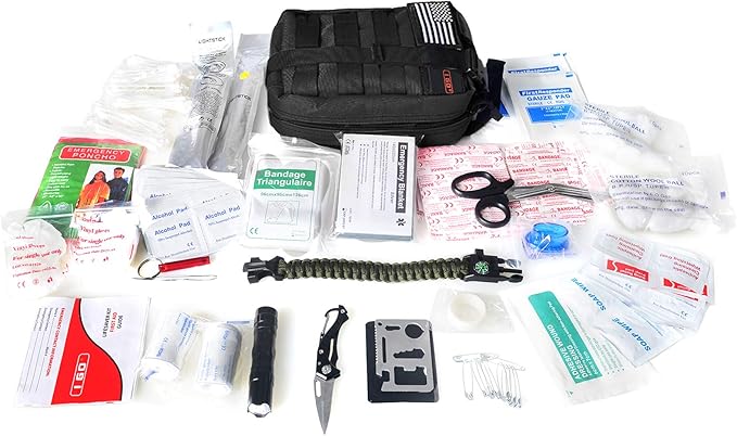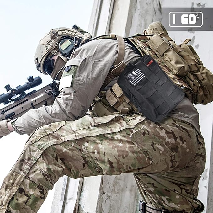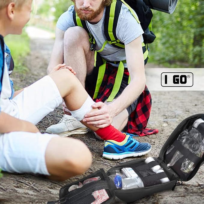 I GO Survival First Aid Kit, 251 Pieces Compact Tactical Trauma First Aid Bag, Molle Compatible Emergency Pouch for Outdoor Camping Hiking Backpacking and Travel