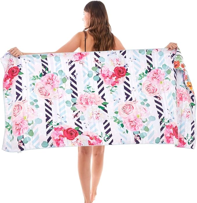 - ❤【NEW DEVELOPED TWO SIDE PRINTED】: Two side printed microfibre towel is healthy and silky smooth against your body. It is an amazing companion when you do Yoga or Pilates. It is a great beach accessory for adults, outdoor recreation, hiking,and it saves a lot of space in your baggage.We have colorful choices for you to choose from whether is stripped ,mermaid ,mandala ,unicorn,rose,shark,turtle,dog,elephant,lemon, flamingo beach towel.No need to worry about pattern.