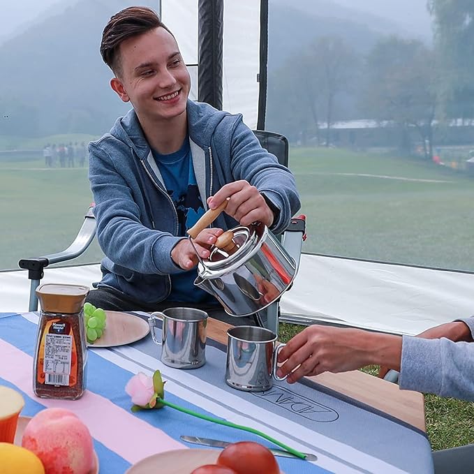 - [OUTDOOR&INDOOR USE]- The camping tea kettle kettle is a perfect choice for indoor and outdoor activities, especially for traveling, camping, hiking, backpacking, RV trailer etc.