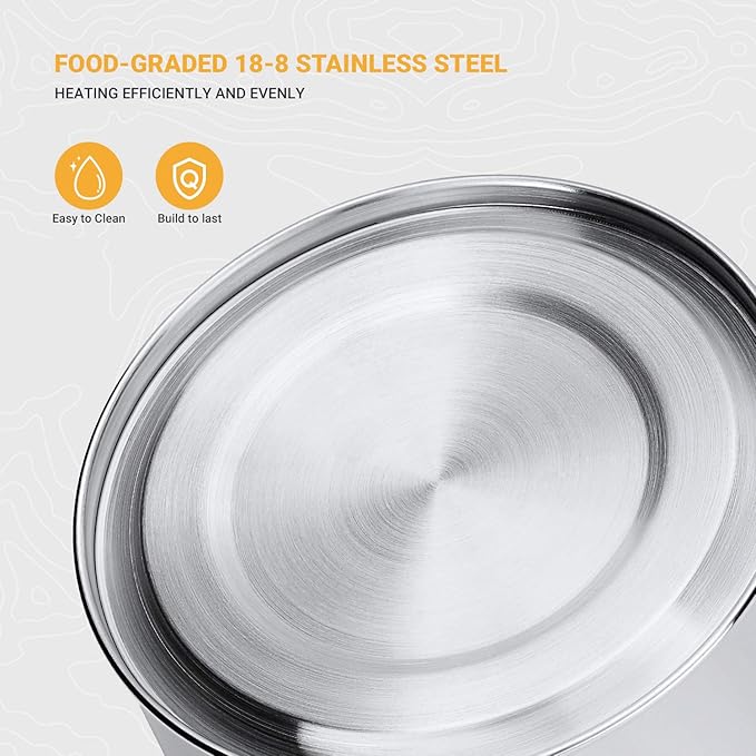 KingCamp Camping Cookware Set 304 Stainless Steel Campfire Cooking Pots Pan and Kettle with Travel Tote Bag for Camping Outdoor Kitchen Cooking Picnic for 4-6