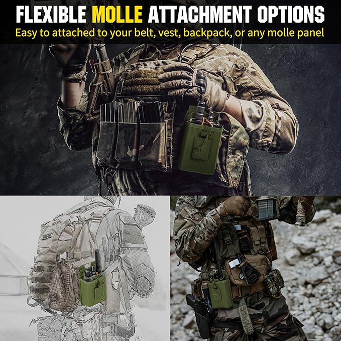 - Molle System: molle straps gives a lot of variety to attach on belt, vest, backpack and other molle compatible gears.