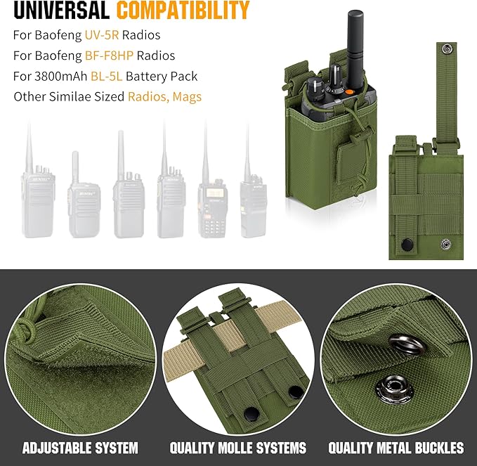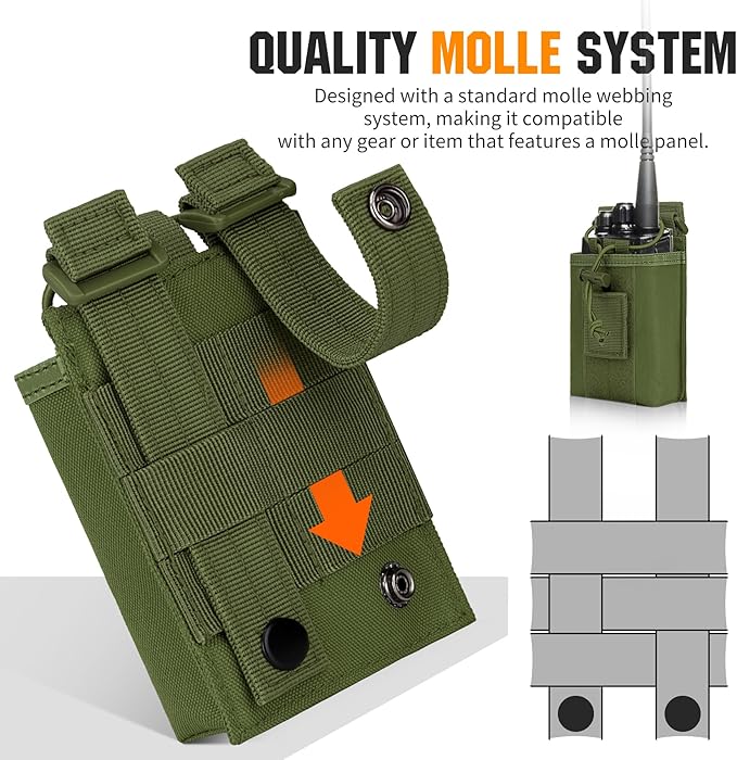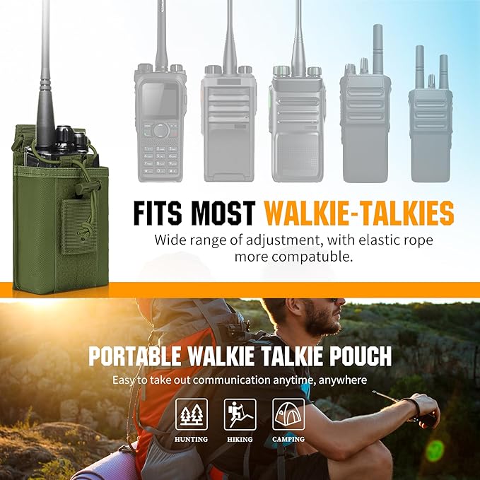 - Adjustable Fastener Design: elastic cord and detachable tape loop to secure the radio inside the radio pouch. The detachable tape loop inside the bag can be adjusted to tighten the radio at different height.