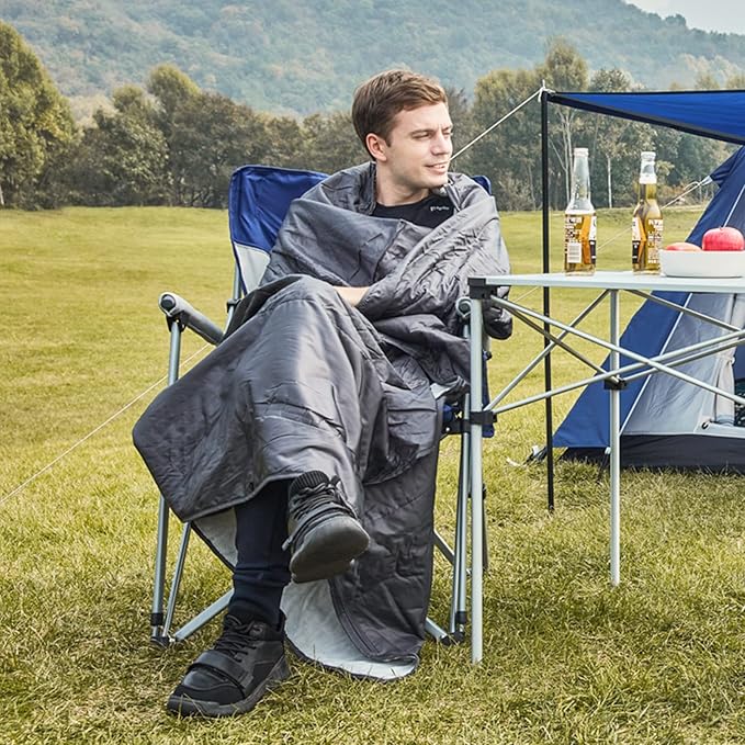 - 【ZIPPER POCKET & MACHINE WASHABLE】A pocket with smooth zipper, store your important articles, like cellphone and keys. This down camping blanket is easy to clean due to its durable and waterproof backing. Easily shake & wipe off dirt, mud, wet grass, and sand. Also machine washable, free your hands.