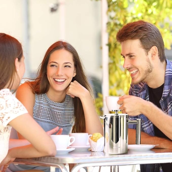 - DOUBLE-WALL 18/8 STAINLESS STEEL: Secura stainless steel French Press coffee maker is made from top quality 18/8 stainless steel, both the interior and exterior. It is made to outlast other coffee makers