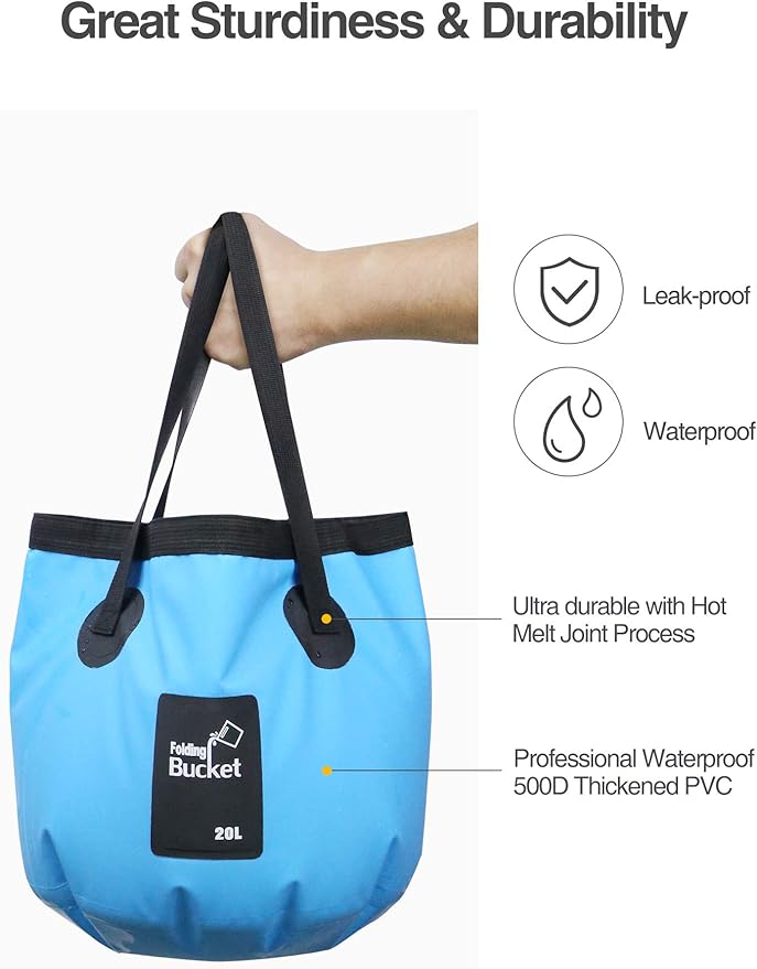 - ❤ LARGE CAPACITY: Capacity - 5 Gallon bucket (20L) can meet your outdoor daily use. Easy to use and dry quickly with using high-quality fabric.