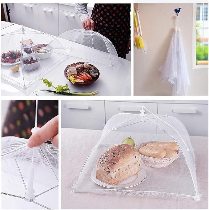 - [ Muti-use for Home Kitchen & Outdoor Camping]: Perfect food covers for outdoor BBQ,camping,party,gatherings. It can keep all foods such as Salad,bbq chicken, steaks, grilled veggies, fruits protected from things like leaves, flies, hair, etc.