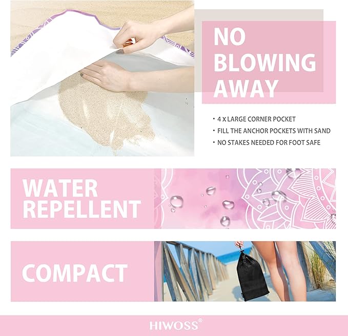 - 🌊【UNIQUE DESIGN, 4 CORNER POCKETS】The eye-catching designed beach blanket, with quality in appearance, will make you stand out on the beach! You can easily find your family and friends on the beach without worrying about getting lost. At the same time, the beach mat is designed with four built-in corner pockets that prevent the blanket from blowing away.