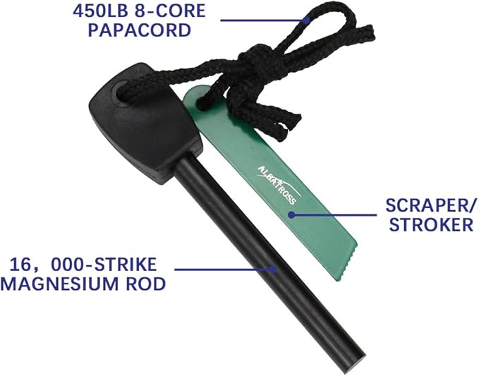 ALBATROSS Fire Starter, Ferrocerium Alloy Rod with Paracord and Lanyard for Emergency Survival Kits, Camping, Hiking, Hunting, Backpacking (2-Pack)
