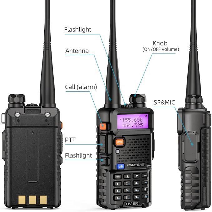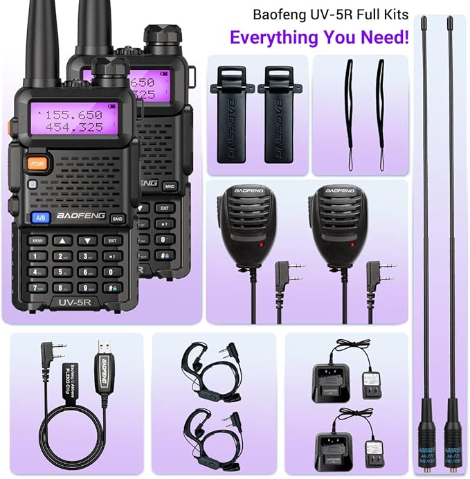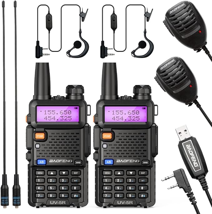 - Professional Walkie-Talkie:With Function VFO & Memory channels scan,Dual display/Dual standby/Auto Keypad Lock;The Baofeng UV-5R is necessary for traveling,survival,hiking,cycling,work,camping,fishing,Emergency Alarm.it is Walkie talkie lover's favorite.FFC ID: 2AJGM-UV5R