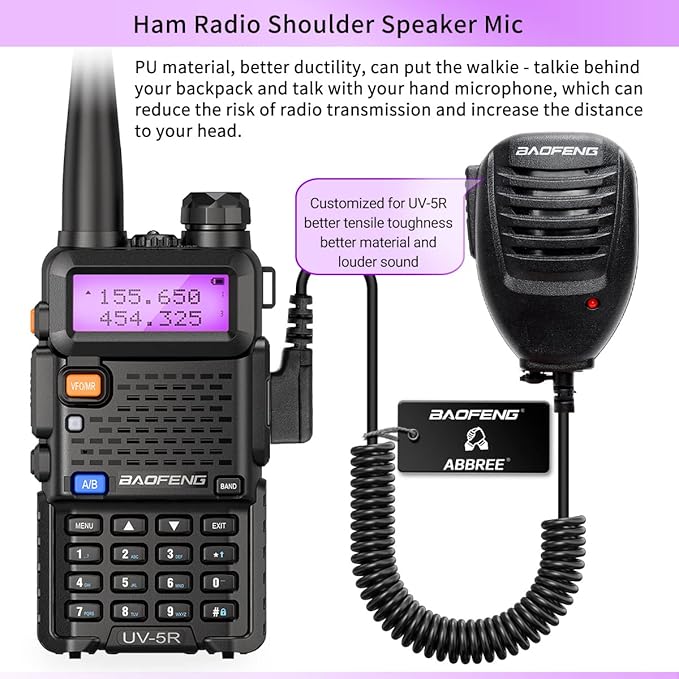 - High Quality Speaker Micphone:With Speaker Micphone,Customized for UV-5R,better tensile toughness,better material and louder sound,release your hands!