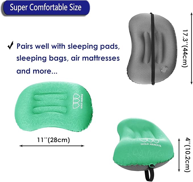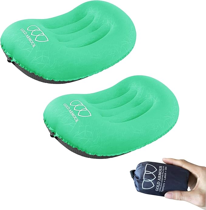 Gold Armour Inflatable Camping Pillow Backpacking Pillow Lightweight Travel Air Pillow Ultralight Ergonomic Pillow Portable for Airplanes with Neck & Lumbar Support (2 Pack) (Seafoam & Seafoam)
