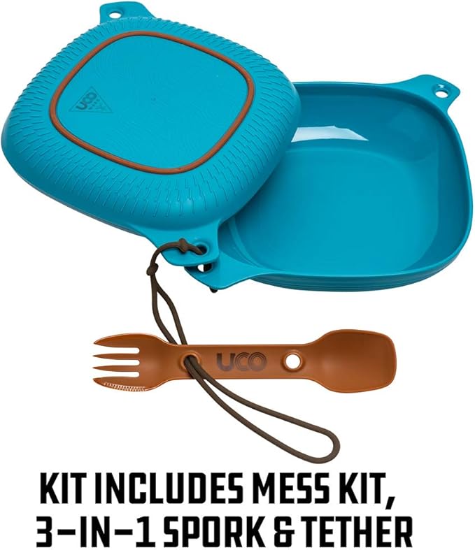 UCO 4-Piece Camping Mess Kit with Bowl, Plate and 3-in-1 Spork Utensil Set