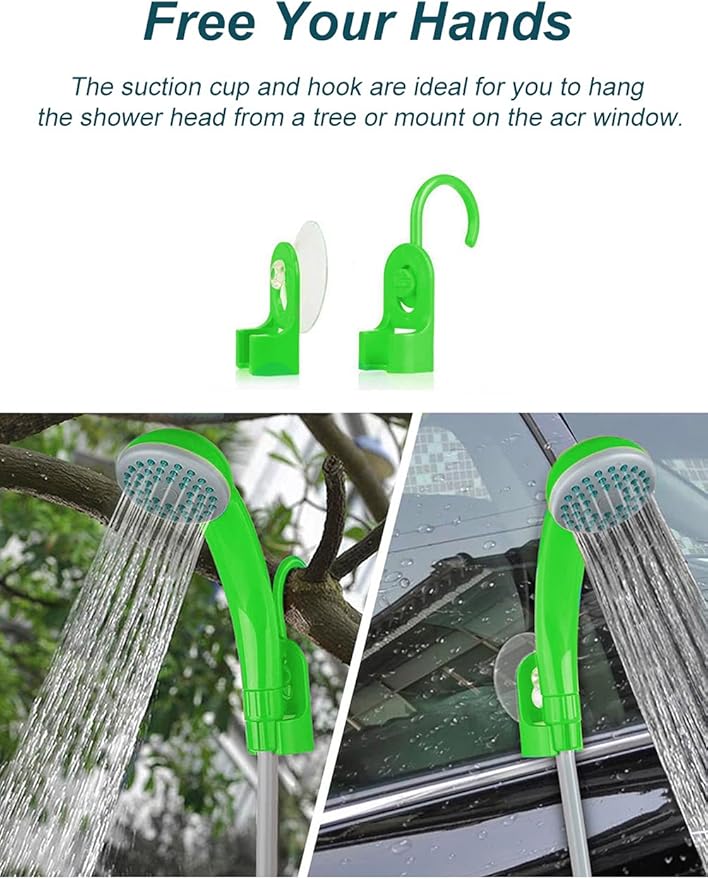 - 【Multiple-uses Portable Shower】Suitable for INDOOR/OUTDOOR showering, camping, BBQ, hiking, traveling, kid bathing, pet cleaning, car washing, plants watering, windows and backyard cleaning. Ideal gift for family, friends on Christmas, Birthday, Father's Day, Mother's Day, Children's Day, etc.