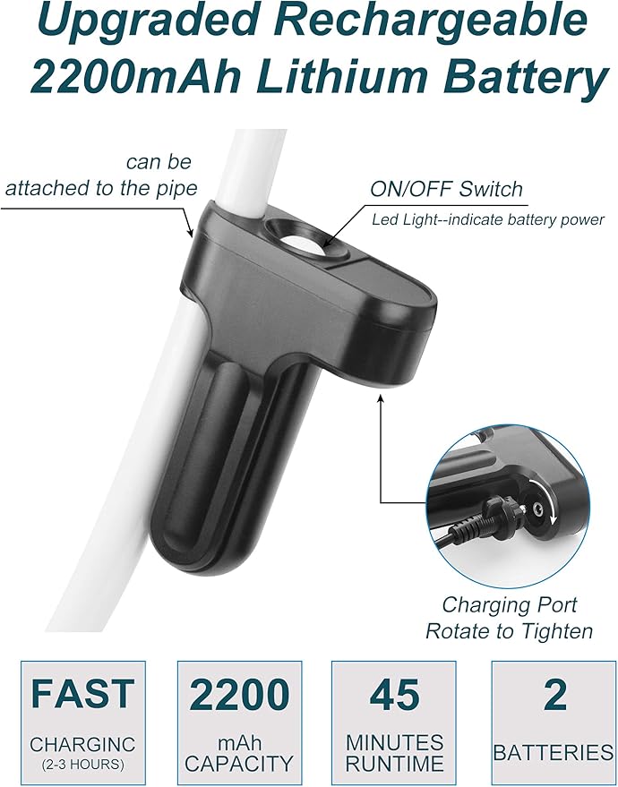 - 【2 Battery with 1 Year Warranty】innhom portable shower for camping come with 2 detachable batteries and a charging cable, direct charge from USB port, car adapter or computer, laptop ( output of 5V/1A~2A ). Full charge of 2 batteries allows 90-120 mins of continuous use. LED light on battery switch can indicate the battery power. innhom portable shower comes with 1 Year Free Warranty to ensure your pleasant shopping experience. Any problems, feel free to contact us.
