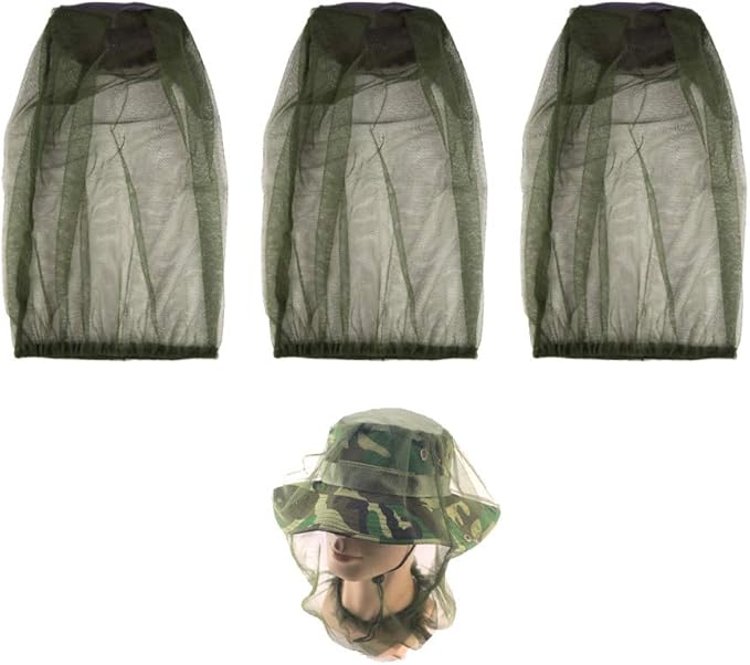 3Pcs Premium Head Net Face Mesh with Extra Fine Holes, Mosquito Hat Mask Head Cover for Camping Hiking Fishing Climbing Protecting from Bee Mosquito Gnats