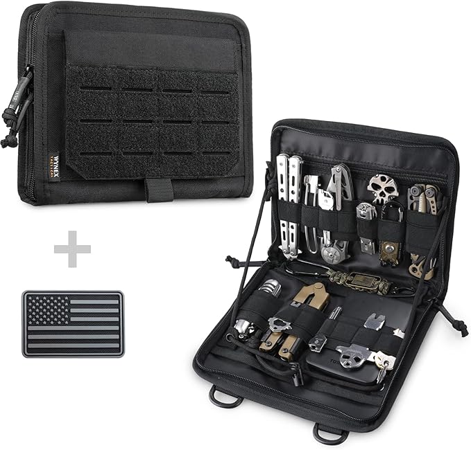 - NICE LAYOUT: EDC Tool pouch with plenty of loops allow you to manage to cram a lot of stuff, one open-top compartment, and one zippered pocket on each side beneath the elastic bands. Accommodate each of your tactical small tools and miscellaneous items to display