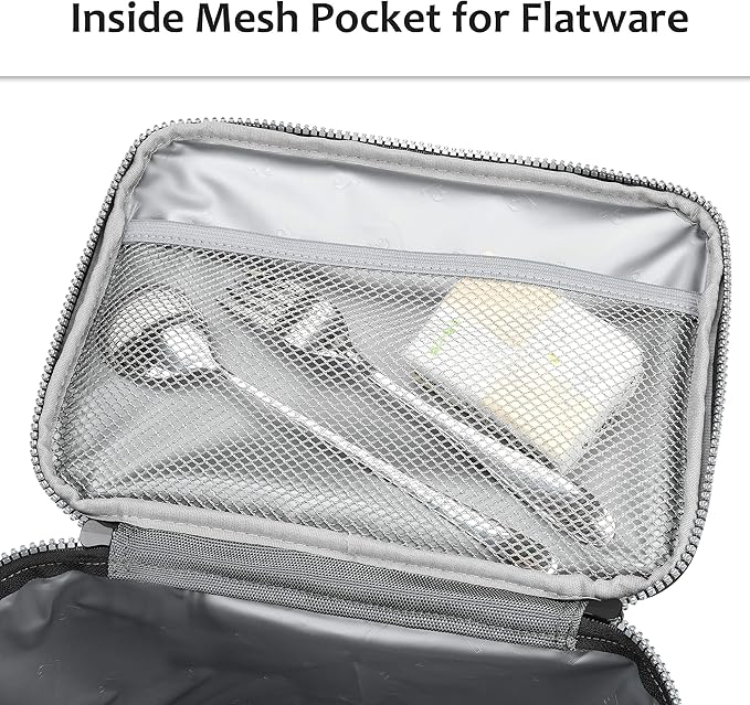 - LARGE CAPACITY: Measuring 9.8 x 7 x 7.8 inches, this adult lunch box offers plenty of room for meals and snacks. It also features a front zipper pocket for essentials like keys and napkins, side mesh pockets for water bottles, and an interior mesh pocket for cutlery like forks, spoons, and knives, making it the perfect lunch box for men or women who pack meals for the day.