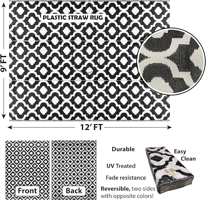 - GREAT FOR RECYCLING ENTHUSIASTS – our recycled outdoor plastic patio rugs are made with premium plastic straws. You’re not only buying a chic-looking patio rug, but you’re also helping the environment!