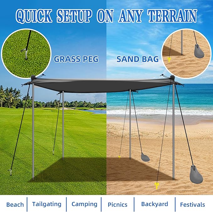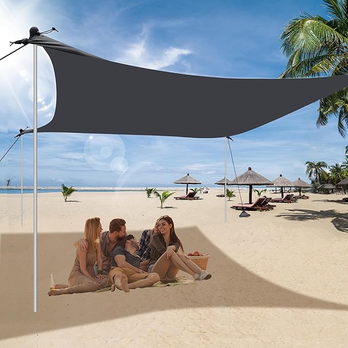 - BEACH SHADE CANOPY WIND SAIL:Our heavy-duty beach canopy is designed to withstand even the strongest winds. With sandbags included, you can enjoy your time at the beach without worrying about your tent flying away.